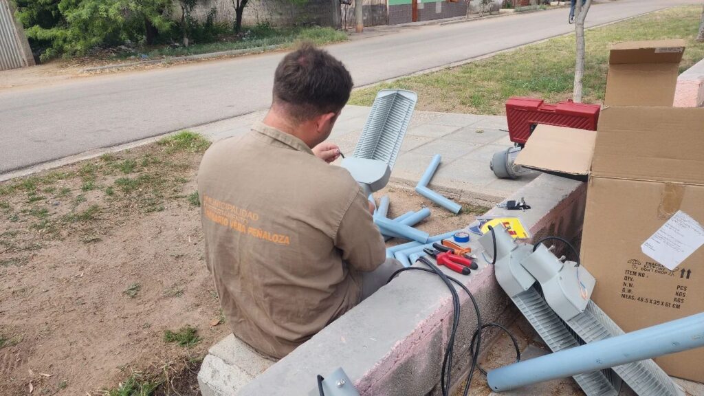 La Secretaría de Obras y Servicios Públicos continúa con los trabajos de remodelación en el Boulevard Obispo Angelelli y el recambio de luminarias en la Plaza Eva Perón.